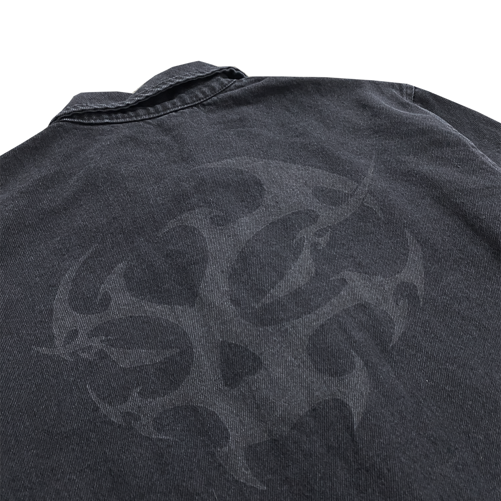 A "CIPHER JAQUETA JEANS" é uma jaqueta produzida em denim premium 100% algodão 12OZ, sendo um tecido pesado com um toque macio. Possui Botão CIPHER, etiqueta de couro personalizada e lavagem própria, além dos cristais brilhantes espalhados por toda a peça.